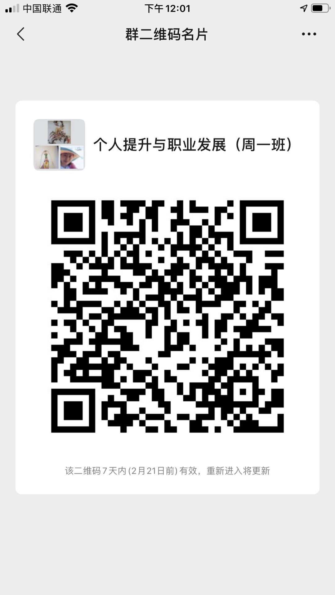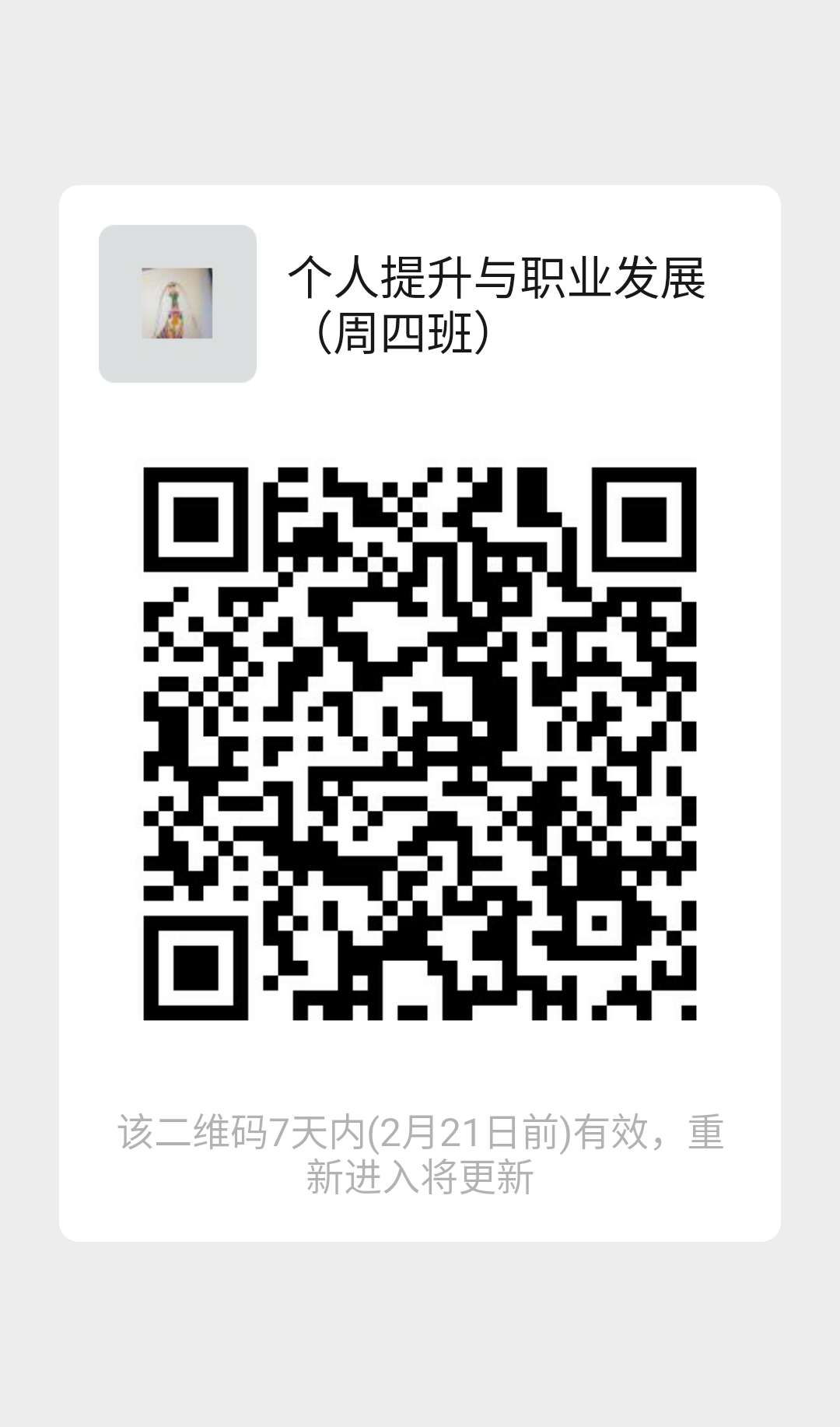 根据《bwin必赢中国官网关于推迟2020年春季学期开学的教学安排指导意见》和《bwin必赢中国官网关于2020年春季学期延迟开学期间远程组织教学与管理工作的安排》的相关要求,自由选修课《个人提升与职业发展》(张博,周一,9-11节;杨丽,周四,9-11节),将采用线上教学的方式上课,请选课学生于2月20日前扫码进群,请同学们互相通知。