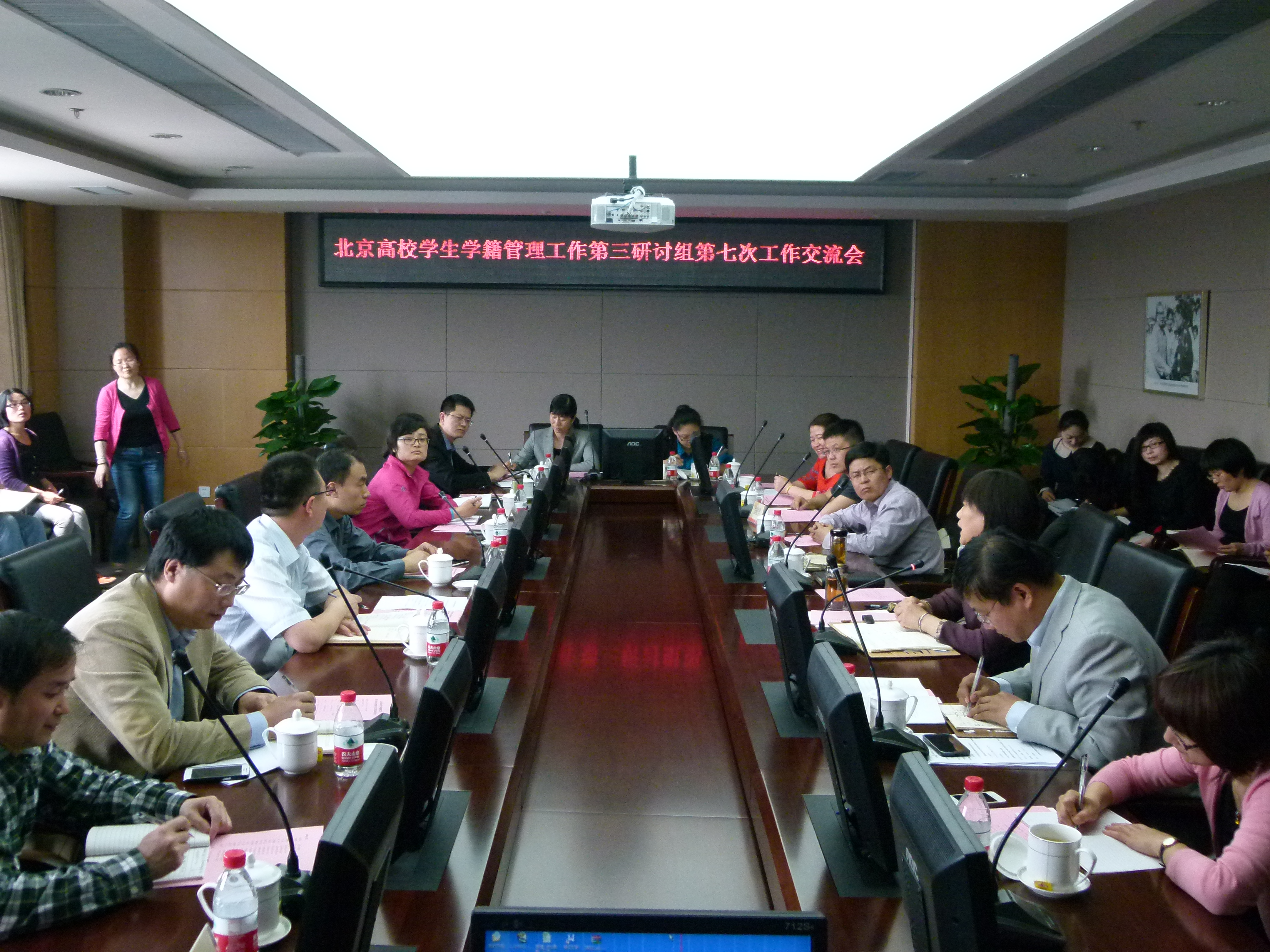 2014年5月8日下午,北京高校学生学籍管理工作第三研讨交流组第七次工作交流会在bwin必赢中国官网第一会议室召开。北京市教育委员会学生处副处长张宪国、北京市教育委员会学生处副处级调研员张道明、以及第三交流组成员北...