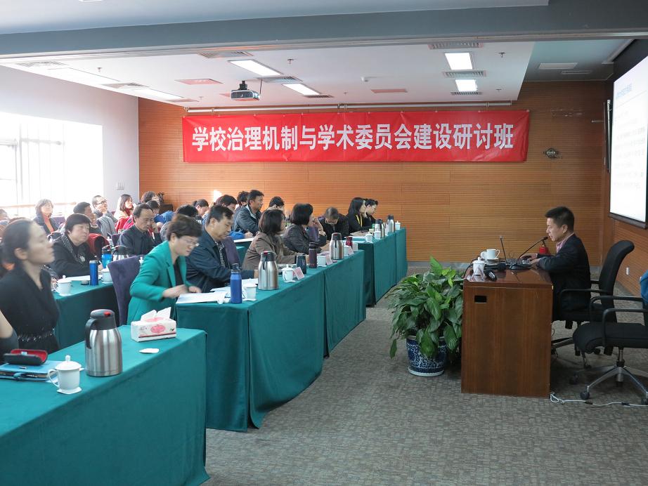 为贯彻落实《高等学校学术委员会规程》(教育部第31号令),研讨如何修订必赢官网《学术委员会章程》,学校科研处、工会、教授协会于11月21-22在密云共同举办“学校治理机制与学术委员会建设”研讨班。党委书记李明舜、院长刘利群、副院长宋胜菊、刘梦、王京霞出席会议。会议由刘梦副院长主持,各院(系、部)主要负责人、校学术委员会委员、各院(系、部)分学术委员会委员、教授、学科带头人、学术骨干等60余人参加了研讨。