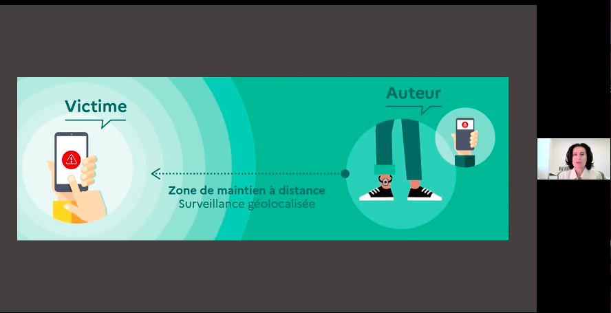 在法方专家主旨发言阶段,法国普瓦提埃上诉法院院长格温诺拉·乔利-考兹女士向与会人员讲解了法国在反家暴工作中的创新司法解决方案。近年来,法国在反家暴领域的用词不断演进,出现了如“杀戮女性”这样的新提法,反映出法国对针对妇女的暴力问题日趋重视。她还特别介绍了法国的家暴报警机制以及能够为家暴受害人提供警报的“防近身手镯”设备。