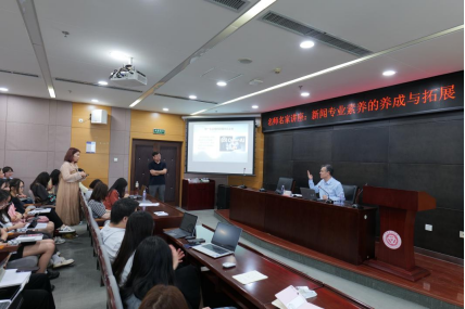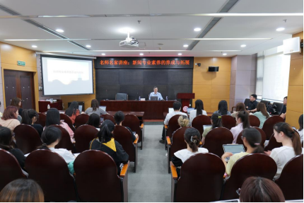 陆绍阳教授从日常见闻出发,结合自身丰富的媒体工作经验,以现实案例引发听众对新闻专业发展路径的思考:高校新闻人才培养方案在未来将会完成从“以媒体为中心”到“以社会为中心,以公民为中心”的转变。陆绍阳教授结合新闻传播史上大家名作以及近期新闻奖作品,指出“要做一名优秀的新闻工作者,首先要明白新闻工作无小事”,强调站在党和人民的立场上处理新闻舆论工作正是马克思主义新闻观的核心所在。陆邵阳教授结合曾担任中国新闻奖评委的丰富经验,分享《同行1800多公里,跟着货车司机跑长途》、《“小田变大田”引出“农田四变”》、《记者调查·羊皮去哪儿了?》《大山里的“百灵鸟”》等数篇中国新闻奖获奖作品的背后故事,强调了新闻工作者要在新闻实践中认识到:“脚力”是一种行动,“眼力”和“脑力”关乎作品的深度、厚度。新闻工作者只有“蹲到现场去,蹲到有历史记忆和时代烙印的地方去”,完成“从观察者到发现者的身份转换”,在不断地写作和改稿中练就真实、鲜活的文化,使叙事从封闭走向开放,才能进一步夯实“四力”这门基本功,写出“带泥土”“冒热气”“沾露水”的好作品。最后,陆邵阳教授就新闻专业学习者及从业者的职业规划与发展路径,就如何“做一名称职的政府部门、企事业单位宣传工作者”、“做一名合格的新媒体从业者”等话题阐述,从网络与新媒体专业所需的专业素养出发,展示处理不当的负面案例,讲述五大有价值的内容,引发在场学生对新媒体行业的融合与规范进行更加深入思考。