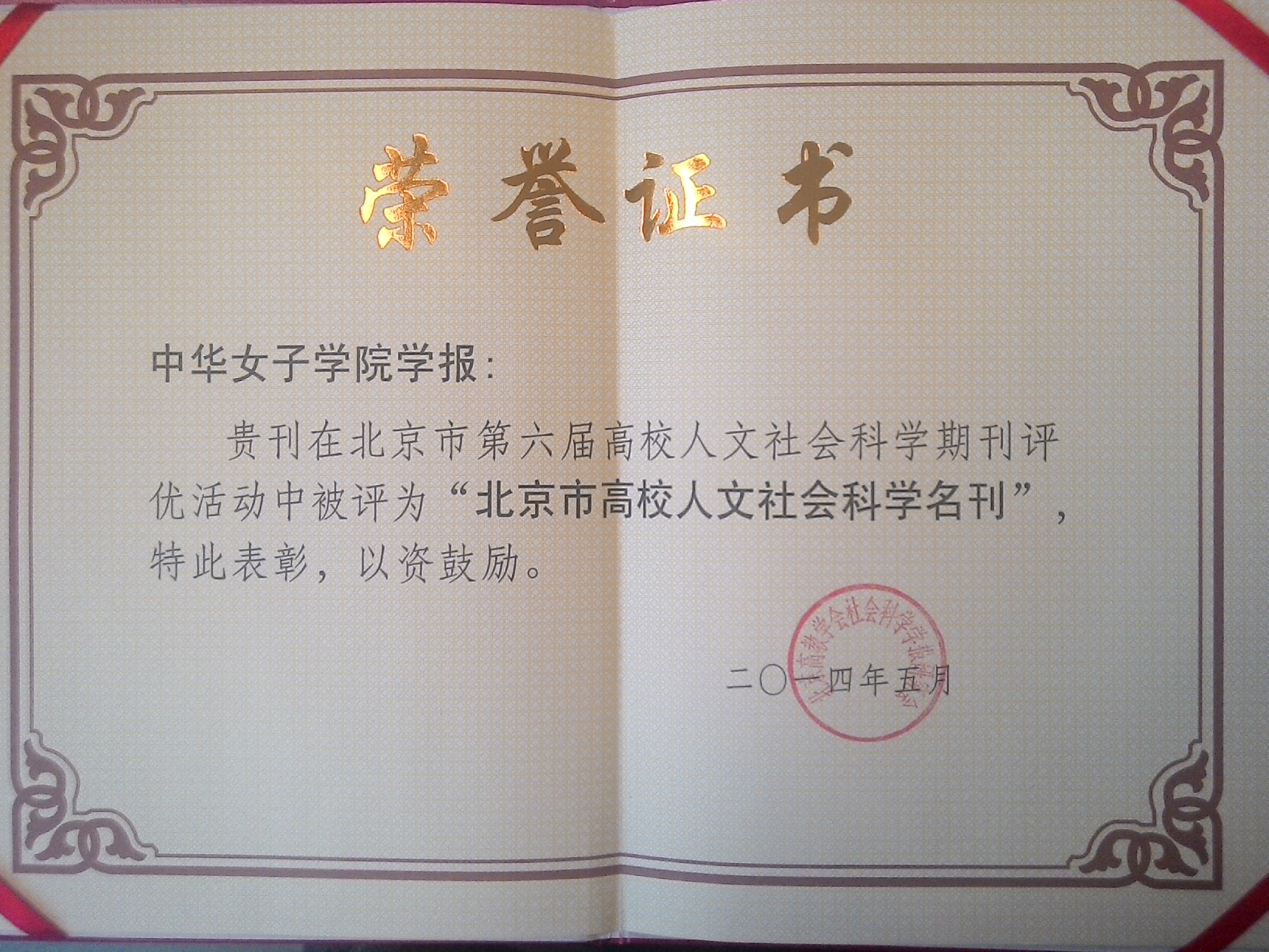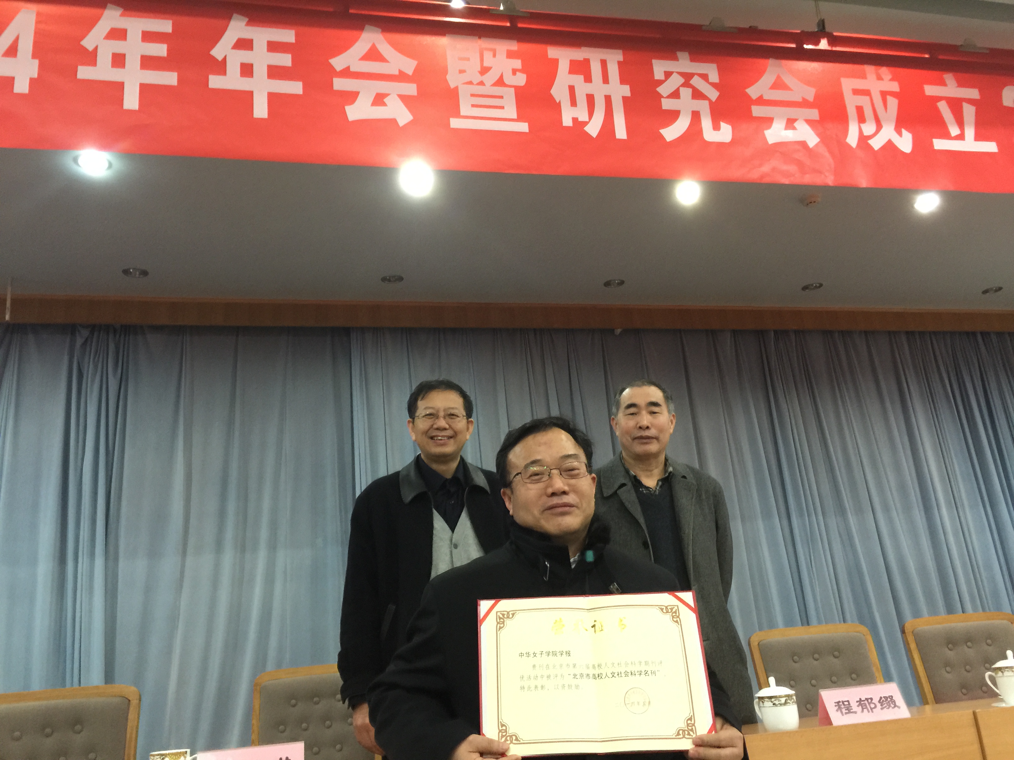 今年4月至5月,北京市高教学会社会科学学报研究会开展了第六届北京市高校人文社会科学学术期刊评优活动,经评审委员会组织专家认真审核和评定,共评出北京市高校人文社会科学名刊24家,北京市高校人文社会科学优秀期刊13家等。我刊在以往连续获得优秀期刊的基础上,本届首次获得名刊称号,此为该评选活动的最高奖级。12月17日至18日,北京市高教学会社会科学学报研究会召开2014年年会暨研究会成立二十五周年庆典,会上公布了评优结果并举行了颁奖仪式,我刊主编应邀出席会议,我刊因有特色、质量优得到大会表扬。