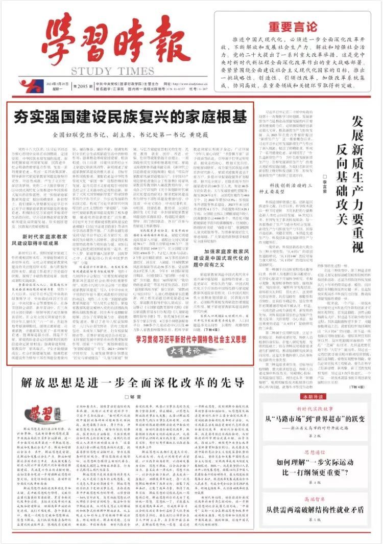 党的十八大以来,以习近平同志为核心的党中央站在治国理政、定国安邦、中华民族永续发展的高度,深刻把握家庭对国家发展、民族进步、社会和谐的重要基点作用,发表一系列重要论述,作出一系列决策部署,领导新时代家庭家教家风建设取得历史性、开创性成就,产生了全方位、深层次影响。党的二十大报告擘画了以中国式现代化全面推进中华民族伟大复兴的宏伟蓝图,对“加强家庭家教家风建设”提出明确要求。新征程上,我们要深入贯彻落实习近平总书记关于注重家庭家教家风建设的重要论述,...