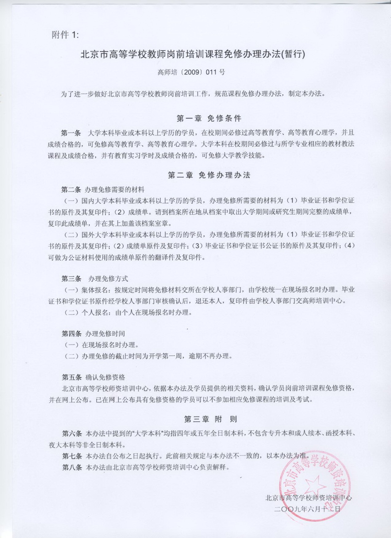 附件1:北京市高等学校教师岗前培训课程免修办理办法(暂行)