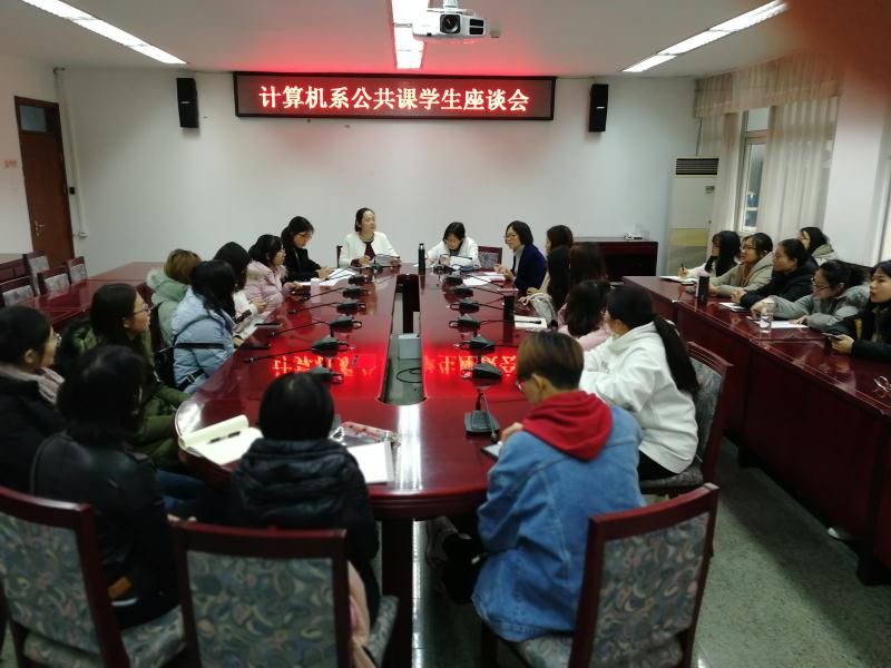 为配合计算机公共课和高等数学公共课程教学改革,进一步提升公共基础课教学质量,加强全校学生的计算机素养和数学思维养成教育,近日计算机系在主楼第七会议室召开全校学生公共课学生座谈会。全校20个专业,共24名学生代表参加。会议由党总支副书记张绮主持,计算机公共基础课教研室主任智洋、高等数学教研室主任张柳霞和部分教师代表参加了本次座谈会。