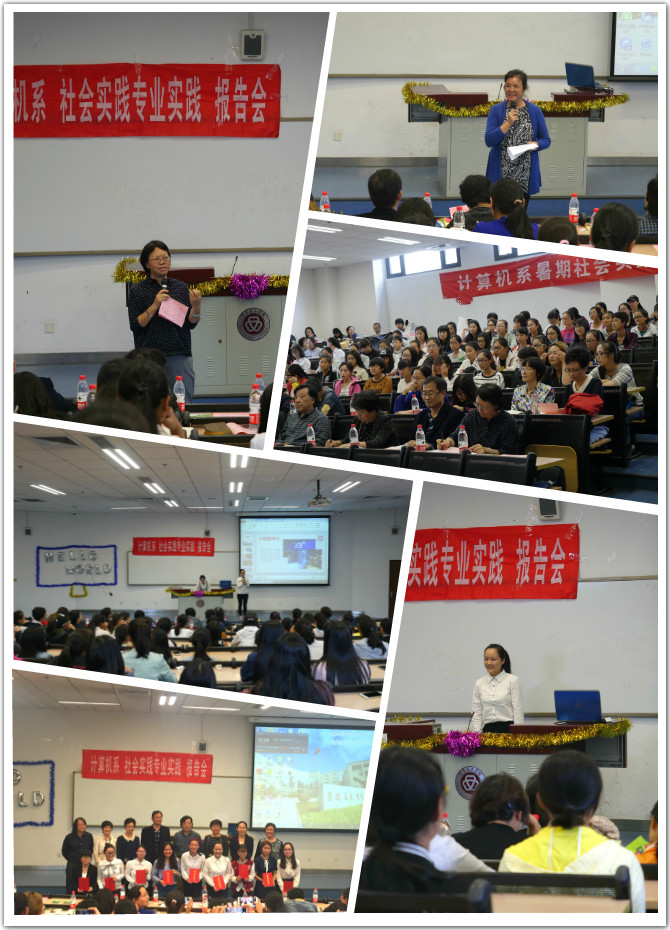 接下来的汇报环节丰富多彩,有数学建模大赛和计算机设计大赛的,有2015级赴美带薪实习的,有2014级赴成都和贵阳暑期社会实践团的,也有2013级和2014级小学期实训的……同学们制作了精美的PPT,展示了她们实践的成果和体验和收获。