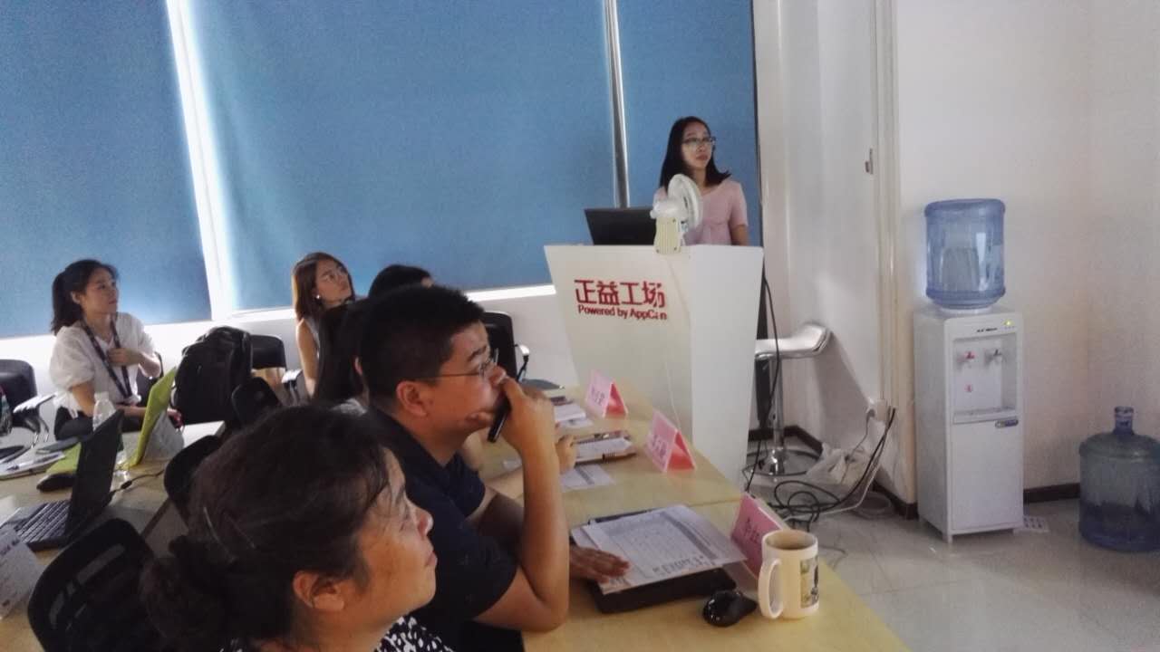 2017年7月14日上午,难得的夏日微风吹过奥赛林匹克森林公园的树梢,将清凉送进位于科荟路慧忠北里222号写字楼的十四层“正益移动”公司,今天计算机系2014级的“数字媒体”方向的同学在这里进行结业答辩,向公司的领导、指导教师、学校老师和同学们展示自己开发的移动应用作品,为暑期“小学期”专业实践活动画上圆满的句号。与此同时,盈佳科技公司负责的2014级“电子商务”方向的小学期Web开发项目也在进行结业答辩。