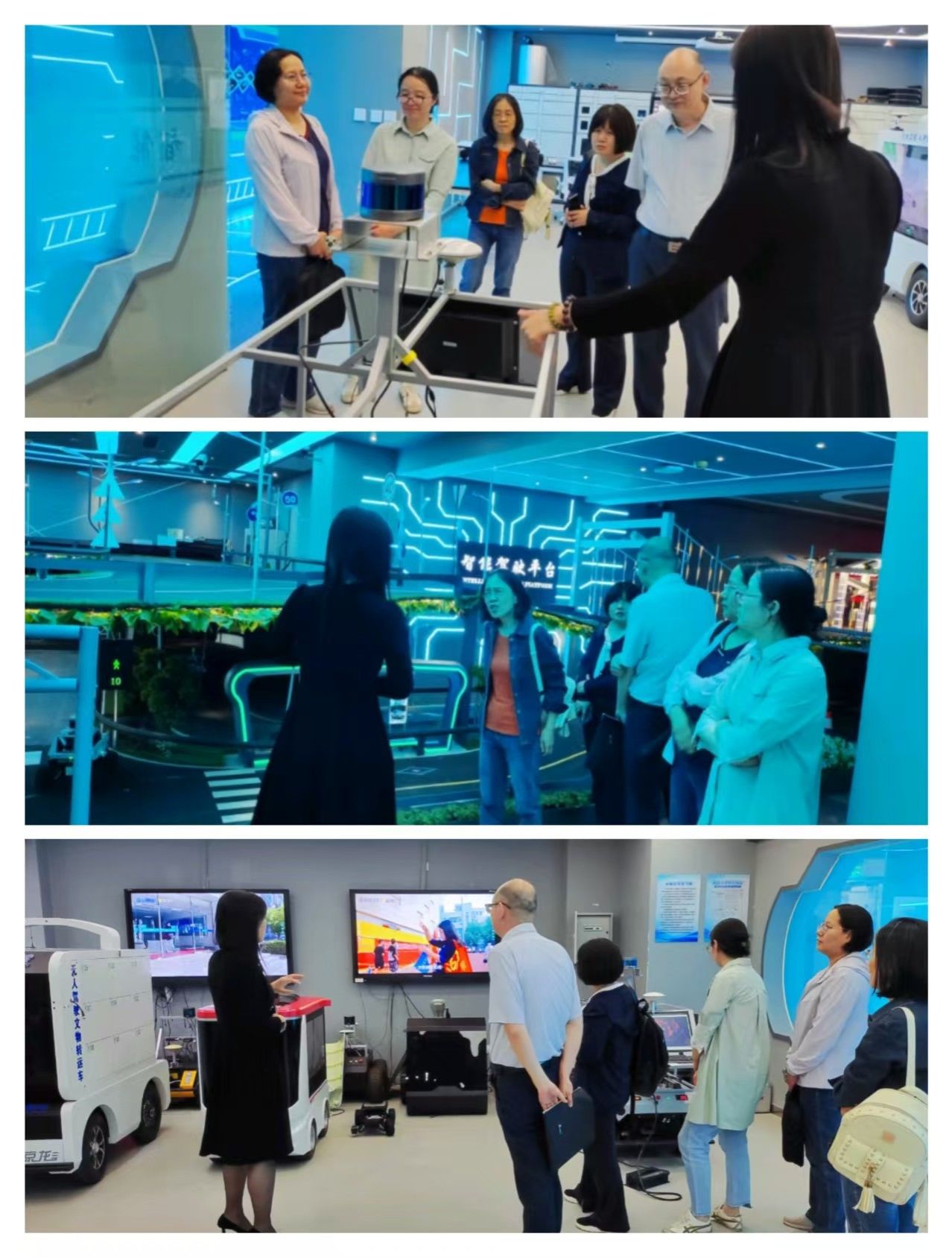 交流会后参观了人工智能专业实验室、多智能体系统研究中心、智能网联平台、无人驾驶平台等,考察了无人驾驶设备的实际运行环境和在校园内的应用,体验了无人驾驶设备。借助这些人工智能方面的实验设备,完成了从课堂到实战的项目对接,为学生构建了从理论到产业落地的全链条实践场景。