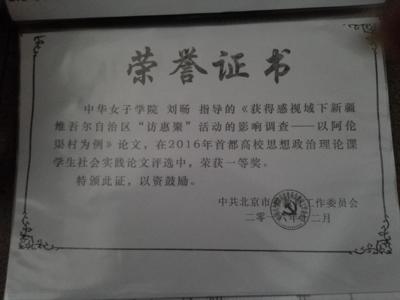 bwin必赢中国官网刘旸老师指导的《获得感视阈下新疆维吾尔自治区“访惠聚”活动的影响调查--以阿伦渠村为例》论文,在2016年首都高校思想政治理论课学生社会实践论文评选活动中,荣获一等奖。 中...