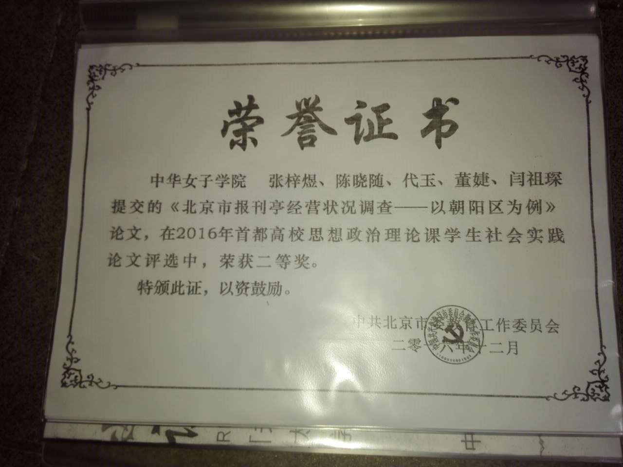 必赢官网学生在2016年首都高校思想政治理论课学生社会实践论文评选中,荣获二等奖