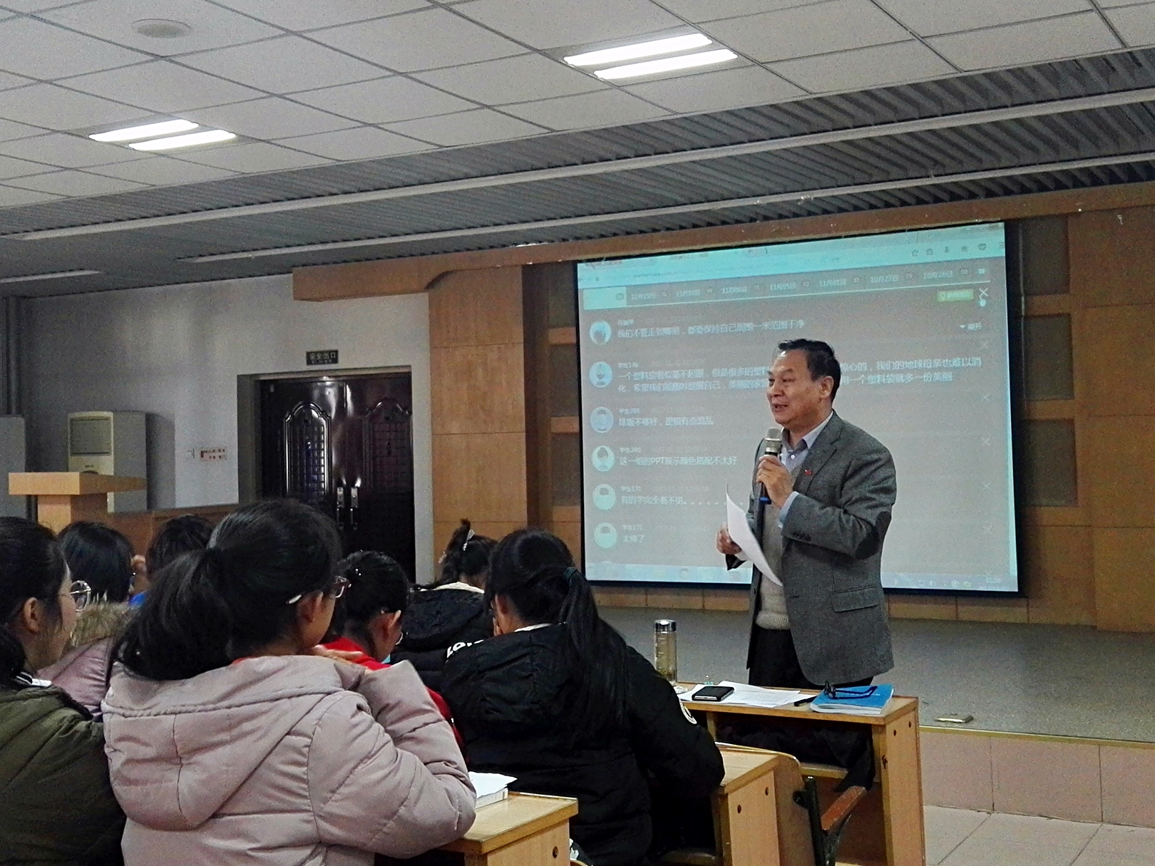 一个半小时,课堂始终在热烈的师生互动中进行。李书记旁征博引,引经据典,以深刻的见地赢得了学生的频频点头和阵阵掌声。知不易,行更难,李书记希望学生们坚持学习,提高知性素养,注重日常践行,在不断的自我反省、修正中成长为具有健全人格、高洁品格、坚韧性格和优雅风格的新时代女性。