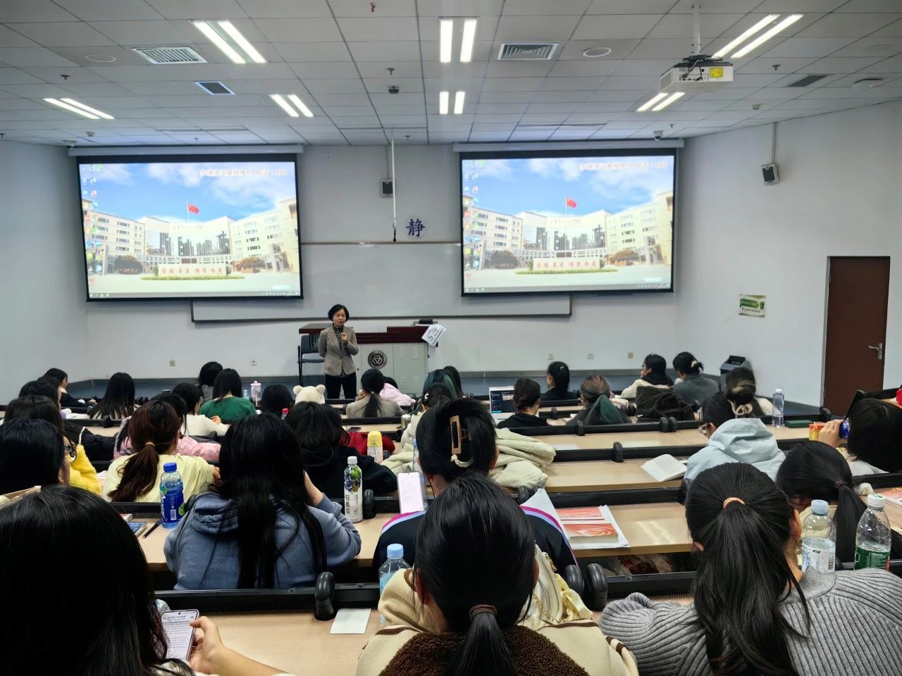 邢书记从区域协调发展背后蕴含的哲理意义入手,为同学们讲授国家布局东西南北、国内国外大棋局的重要蕴意。接着,在具体分析区域协调发展布局时,以胡焕庸线的具体内容和确立意义为抓手,和学生展开了一场对国家不同地区发展情况的探讨。过程中,邢书记以其深厚的理论功底、丰富的实践经验、渊博的地理知识和广博的人文知识为同学们讲解了不同地方的特殊位置呈现的不同的发展态势,充分调动了学生的积极性。