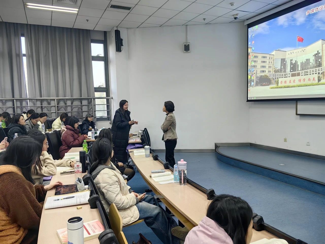 同学们主动参与到对话与谈论中,课堂气氛非常活跃。在充分讨论的基础上,邢书记将国家区域协调发展和个人成长结合起来,让学生在正确认识发展布局的基础上明确个人的定位,将个人的发展和国家的发展结合起来,在助力国家发展中实现个人的人生价值。
