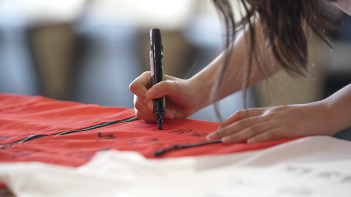 走入教室,孩子们早已在教室静静等候着小老师们的到来。孩子们将五天以来的所学,转化为一个个精彩的节目。他们唱京剧、跳舞蹈、画国画、深情演唱《我和我的祖国》,用中英文双语讲述红色故事……。今天恰逢一位孩子8岁生日,小老师们还专门为她准备了生日礼物。伴随着突然响起的《生日快乐》歌,整个联欢走向了高潮。告别环节,孩子们哭着和老师们一一拥抱,合影,恋恋不舍。