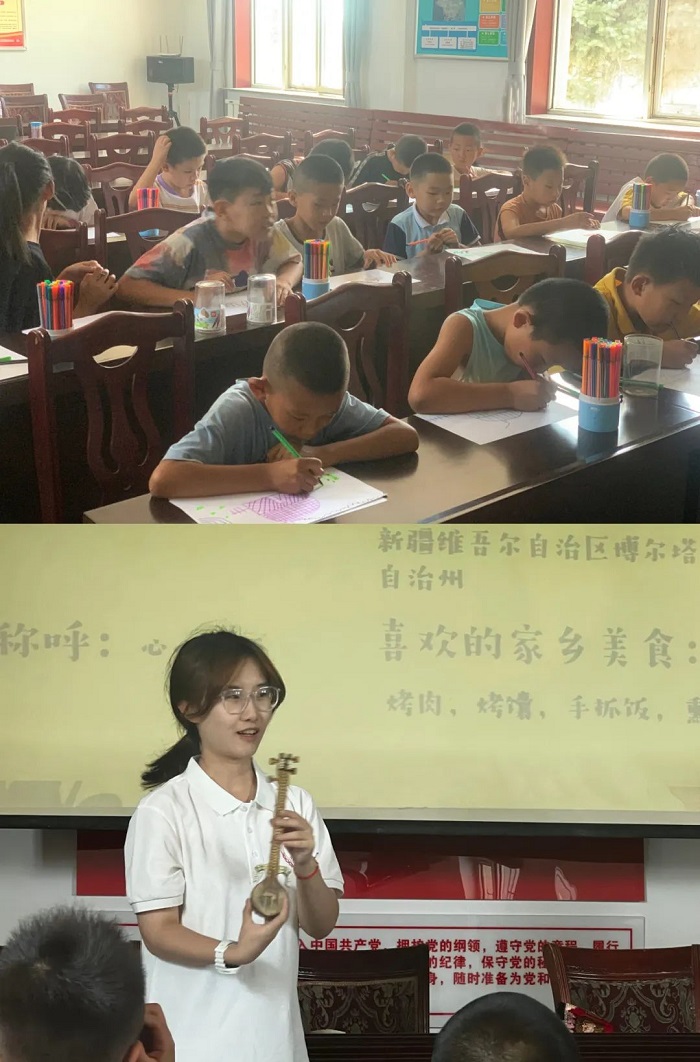 同学们为孩子们带来了“推普课堂”。在推普课堂上,孩子们念字正腔圆,颂家宁国安;一张一合,一字一句,体味汉字文化的博大精深。通过推普学习,孩子们深深懂得,学好普通话,不仅是新时代少年儿童的责任和使命,更是将五十六个民族像石榴籽一样紧紧抱在一起的纽带和力量。