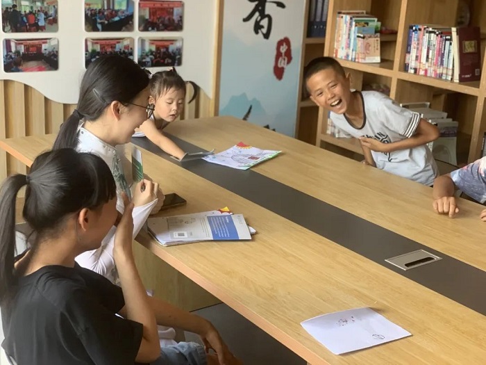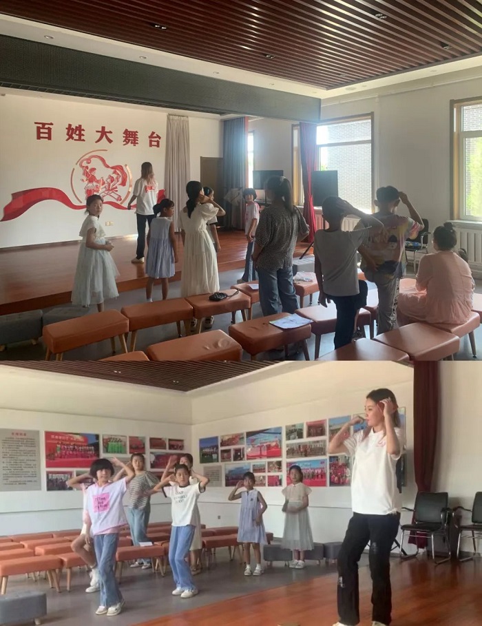在板申气村,红色双语故事、舞蹈律动等教学活动如火如荼地开展着。同学们根据研学营孩子们的年龄和兴趣,开展了分班教学和分层教学。红色双语故事让孩子们在日常的语言学习中,重温红色故事,激发爱国情怀,从而领悟语言学习的目的和意义,从小树立向世界讲好中国故事的信心;舞蹈律动让孩子们通过舞之美,韵之妙,塑造良好体态,提升自信心,加强合作能力,增强集体意识。