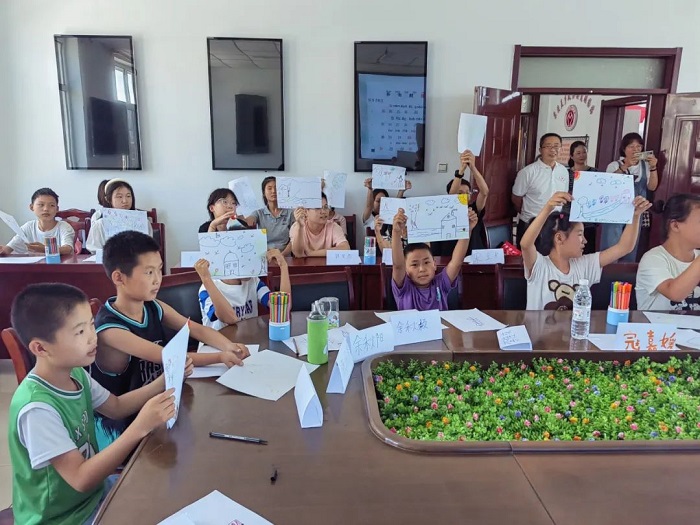 早上八点半,同学们早早来到教室进行课堂准备,20多个孩子带着灿烂的笑容走进教室,与志愿服务的同学们一起开启了第一天的研学小课堂。