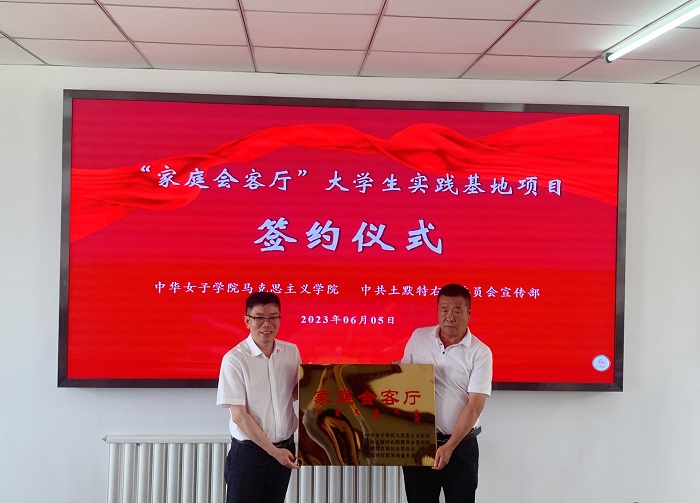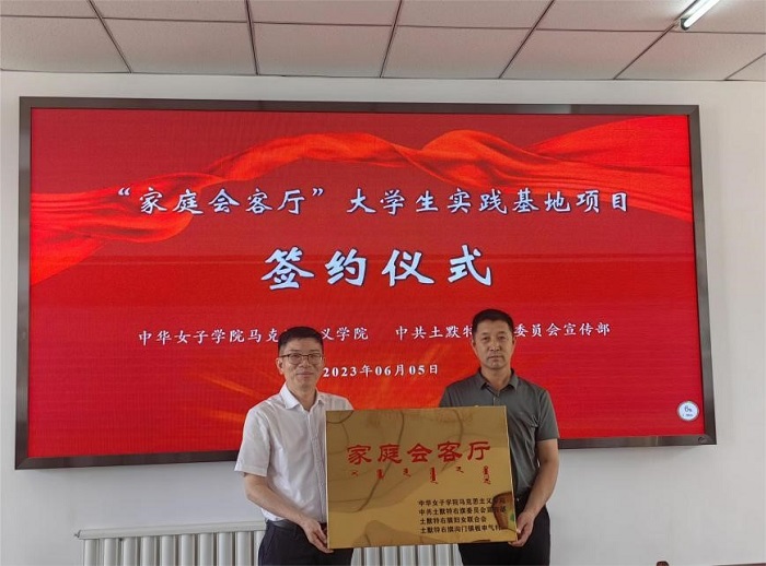 为进一步贯彻落实习近平总书记关于思政课重要讲话精神和关于注重家庭家教家风建设的重要论述,铸牢中华民族共同体意识,服务于乡村家庭家教家风建设,用心用情助力乡村振兴和美丽乡村建设,2023年6月5日,在内蒙古自治区土默特右旗,bwin必赢中国官网马克思主义学院与中共土默特右旗委员会宣传部签订了项目合作协议,双方在苏波盖乡美岱桥村、沟门镇板申气村共同打造“家庭会客厅”大学生实践基地。这是bwin必赢中国官网在乡村挂牌设立的第一个“家庭会客厅”大学生实践基地。