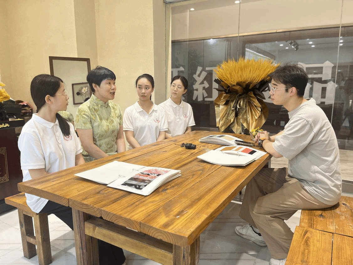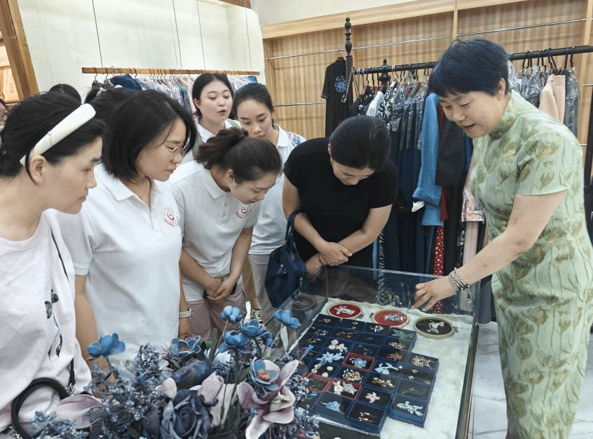 她还向实践团详尽介绍了服装的制作工艺和设计创新亮点。通过她的讲解,实践团的师生们对中国传统服饰有了更加深入地了解,深刻感受到传统与现代融合所焕发出的无限魅力。