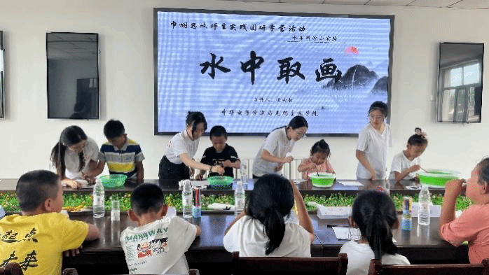 水墨实验课充满了惊喜与创意,同学们带领孩子们探索宣纸与墨之间的神奇纽带,他们勾勒出不同的水墨画作,感受艺术的无限可能。