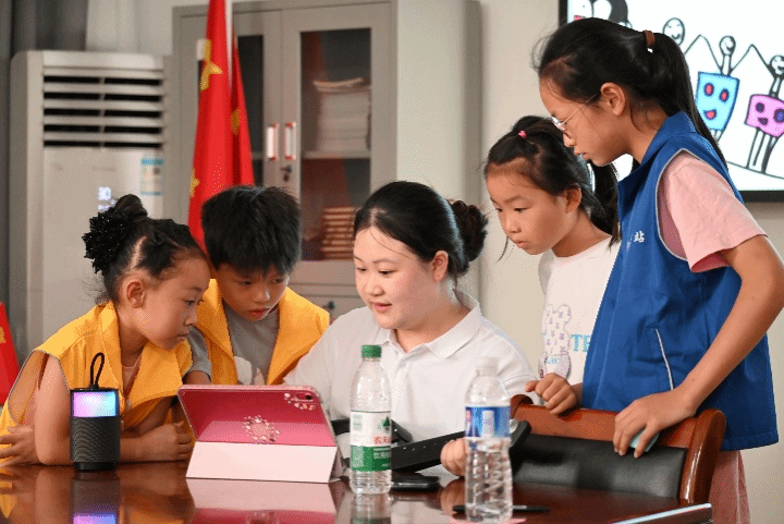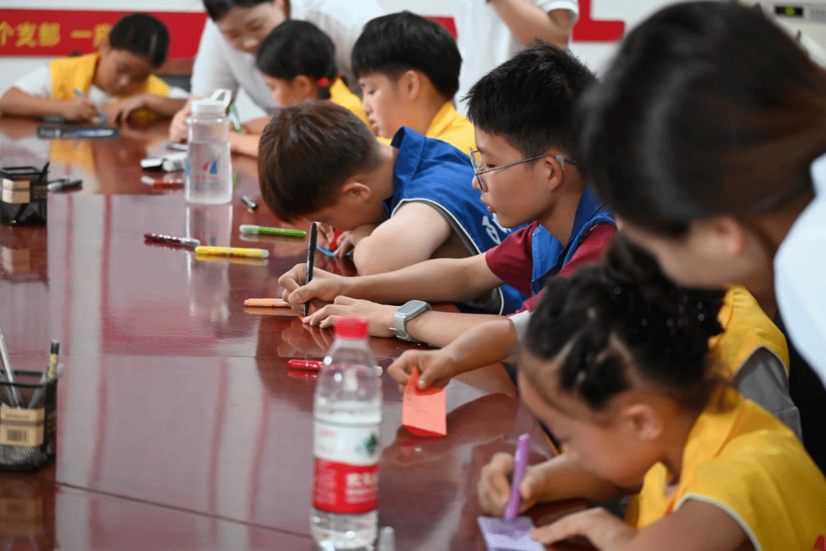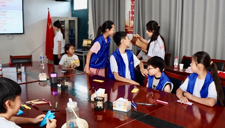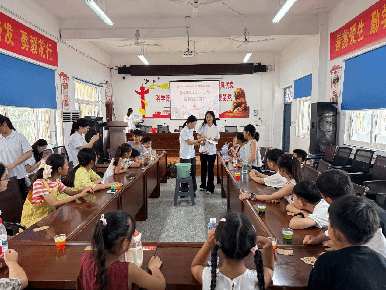 开营仪式结束后,实践团师生来到濠城镇中心小学,分两个班级同步开展研学小课堂。开营第一课,同学们通过制作姓名牌、趣味游戏、分享家乡及成长话题等形式和小朋友们快速拉近距离、增进感情。