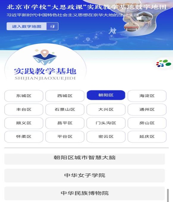 “大思政课”实践教学基地数字地图由北京市委教育工委委托中国人民大学、北京高校思政课高精尖创新中心打造,运用VR等信息技术,生动呈现全市16个“区-校”共同体中,超过200个北京市“大思政课”实践教学基地的实践教学示范教案、案例。此次必赢官网马克思主义学院在党委宣传部指导下精心打造的“行走的思政课”(第一季——第三季)成为北京市“大思政课”实践教学基地示范课程。该课程充分呈现了必赢官网积极发挥女子学院“大思政课”建设独特和丰富的女性资源优势,加强“大思政课”建设和大中小学思想政治教育一体化的优秀教学成果,已经成为在全国有一定影响力的思政课特色品牌。