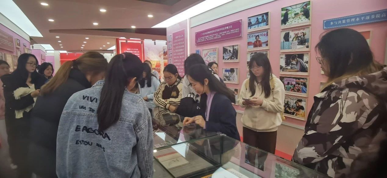 参观中,师生们亲身感受了党的领导下妇女事业在脱贫攻坚、科技创新、教育卫生等领域取得的巨大成就。展览中的实物、图片生动展现了新时代妇女自尊、自信、自立、自强的精神风貌,使学生们深刻感受到了妇女作用的全方位彰显和妇女发展的全方位进步。