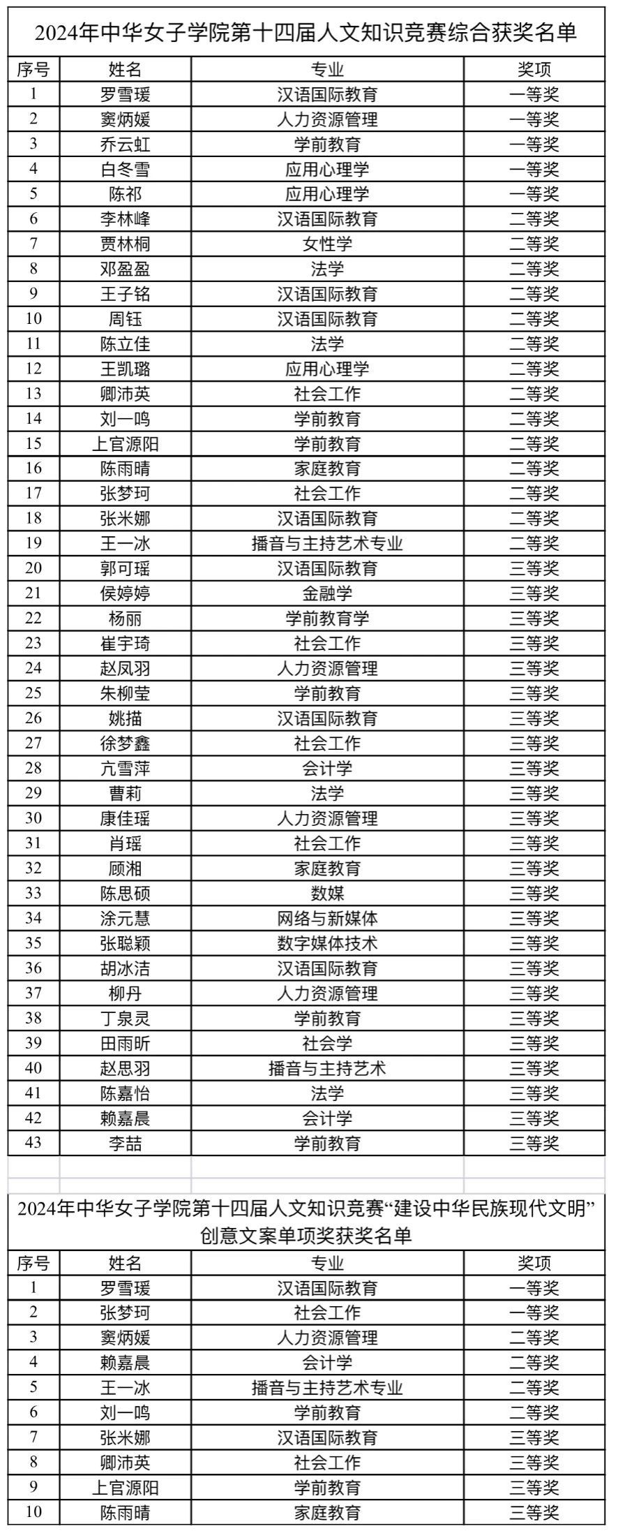 2024年bwin必赢中国官网第十四届人文知识竞赛获奖名单:
