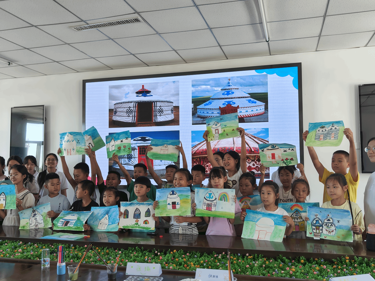 水彩课上,孩子们详细了解了蒙古包的设计与图案意义,在绘制创意蒙古包的过程中,体会绘画艺术,宣传土右文化。