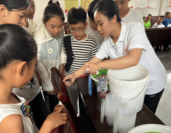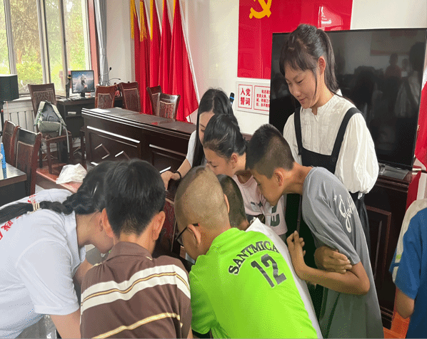 趣味实验课和国画课等课程如火如荼地进行。实践团同学们精心策划,根据研学营孩子们年龄特点和兴趣所在,采取分组教学和互动教学形式。