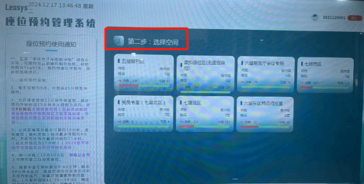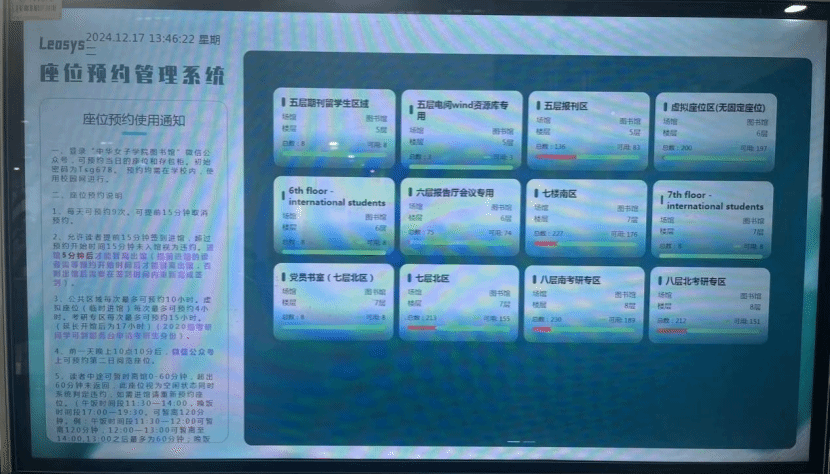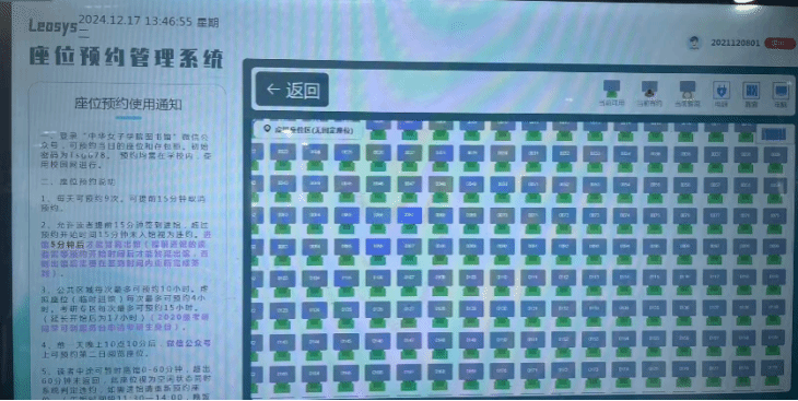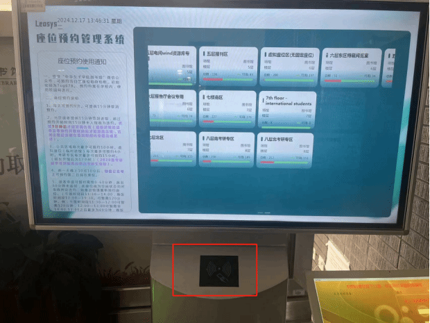 1.读者还可以在进馆处预约座位,在图书馆一层和六层均设有自助选座设备(图16所示)。