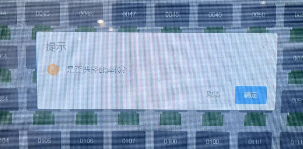 3. 选择成功后,出现确定选择座位的提示框,如果确定,请点击确定(图19所示)。