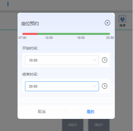 3.选择空闲的绿色座位。选择开始时间和结束时间,点击预约(图13所示)。