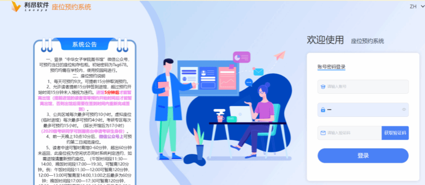 1.在校内读者的笔记本电脑或者图书馆内的检索机网址栏,输入座位预约系统http://seatlib.cwu.edu.cn/jsq-v/#/login回车,即可看到预约座位的页面(图11所示)。