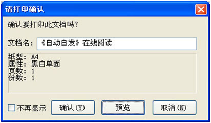 2. 确认、预览信息 输入完毕后,弹出打印确认窗口,如无异议,请点击确认。在该窗口中,还可以预览所要提交的文档,如果对所提交打印文档不满意,可选择删除。