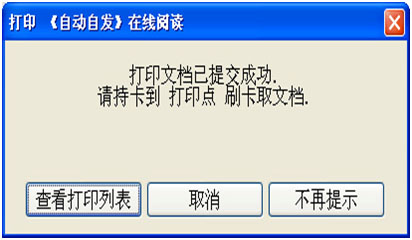 3.提交打印 如果需要打印,点击确认选项,在窗口中弹出“打印文档已提交成功”的对话框。