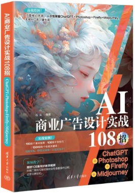 《AI商业广告设计实战108招:ChatGPT+Photoshop+Firefly+Midjourney》通过15个专题内容、108个实用技巧、160多分钟教学视频,讲解了运用ChatGPT+ Photoshop+Firefly+Midjourney进行AI商业广告设计的操作方法。具体内容按以下两条线展开。 一是技能线:详细讲解了ChatGPT、Photoshop、Firefly、Midjourney的使用方法,包括生成AI商业广告关键词、色调处理、修饰与润色、AI一键抠图+生图、通过关键词描述生成广告图像以及Midjourney的AI广告绘画技巧等。 二是案例线:详细介绍了企业Logo、模特服装、宣传海报、杂志广告、节日活动、电商广告、网页主图、商业插画、产品造型以及产品包装这10类常见商业广告设计的操作流程,帮助读者更好地掌握AI商业广告设计的关键词提炼、图像生成技巧与后期处理应用等。