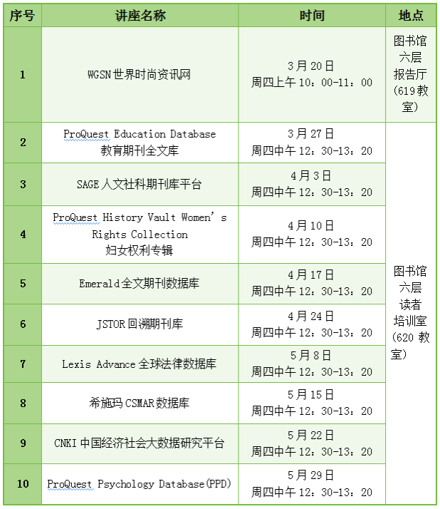 为帮助读者充分了解并高效利用馆藏资源与服务,提升学习与研究效率,本学期 “一小时讲座” 即将再度起航。图书馆将邀请各数据库公司培训师为大家带来专业培训,培训以线下讲座为主,参与线下讲座的教师培训时长可计入教师教学发展中心校内培训学时。