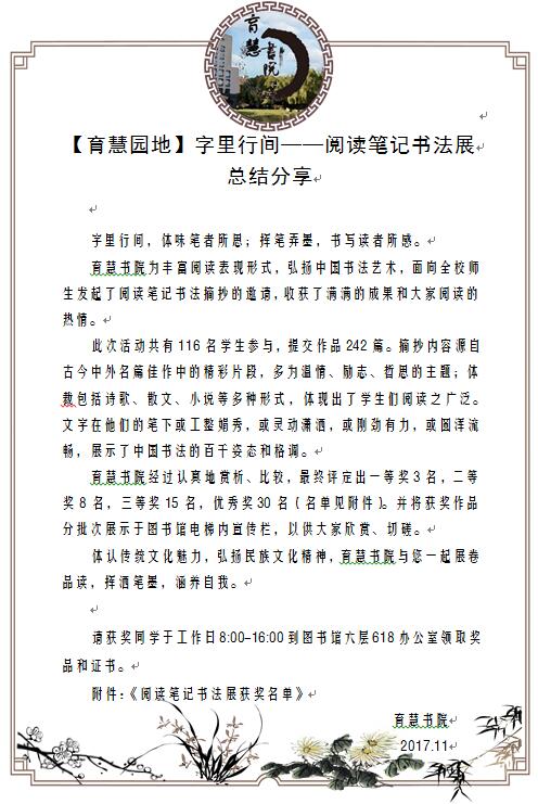 上一条:活动通知:【育慧园地】字里行间——阅读笔记书法展