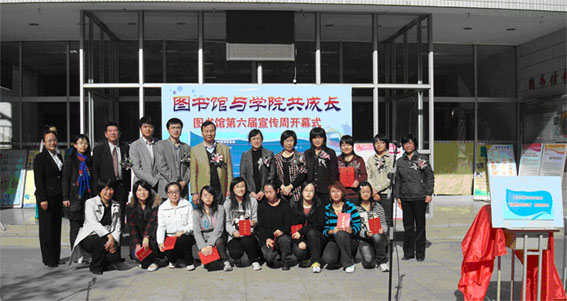 在举国欢度国庆、全院共迎校庆之际,图书馆迎来了第六届宣传周。10月26日中午,在食堂前广场,图书馆举办了第六届宣传周开幕式。张李玺院长、黄海群副院长、李明舜副院长、宋胜菊副院长和数据商代表出席了开幕式。