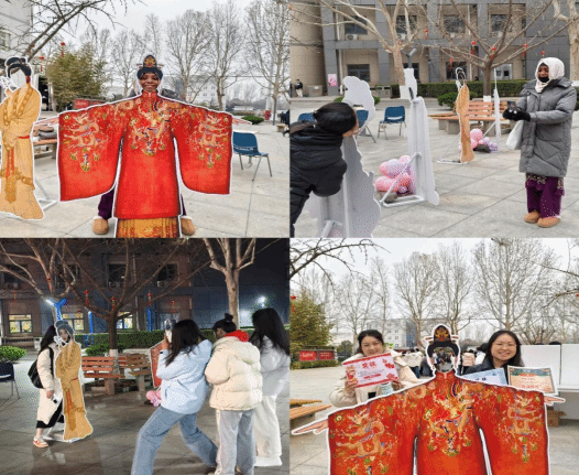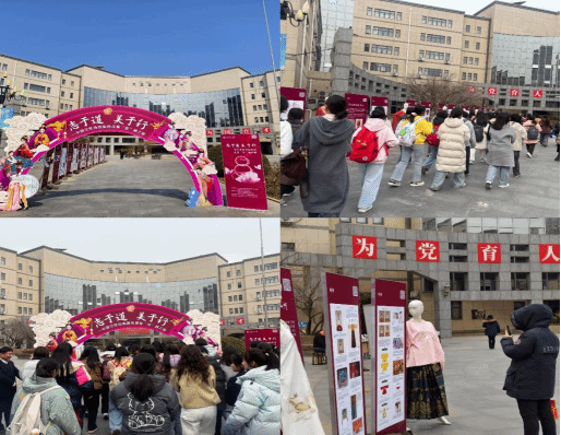服装区既有婉约之美的宋服,也有明艳动人的唐装,还有那绿肥红瘦的旗袍等服饰。身着不同朝代服饰的学生们穿梭于校园的角角落落,与温煦阳光下的景致相映成趣,让羽衣翩然起舞,衣香缕缕入春意,蝶在花头谁争俏,共赴千年这美旅!