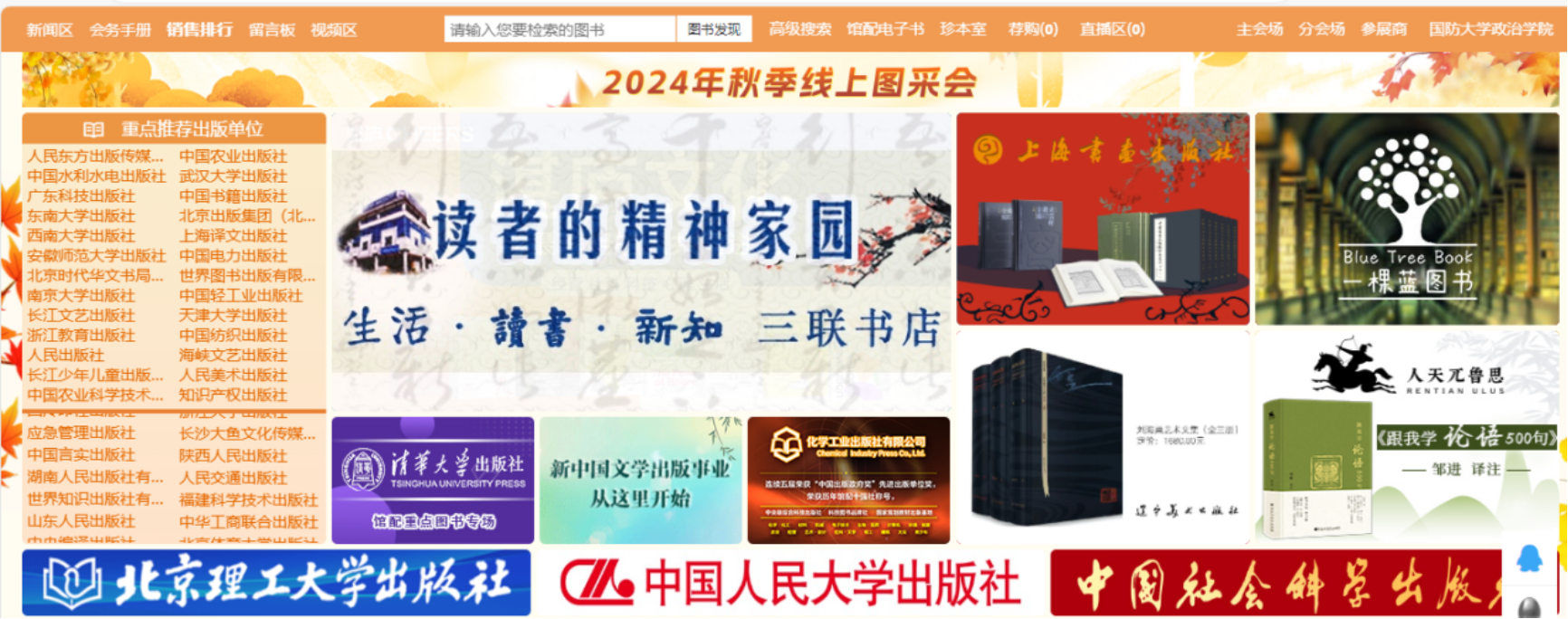 1、主会场:展示重点出版社书目,直接点击出版社名称即可进入选书界面。