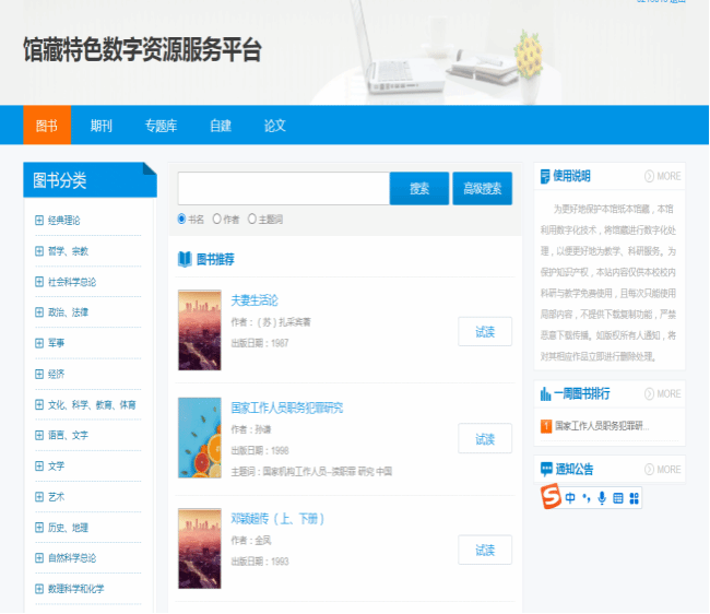 内容简介:以中国女性图书馆藏书为基础,将其中部分中文纸本图书数字化后的电子图书,安装在此平台上。读者可通过该平台,阅读与纸本图书匹对的电子图书。