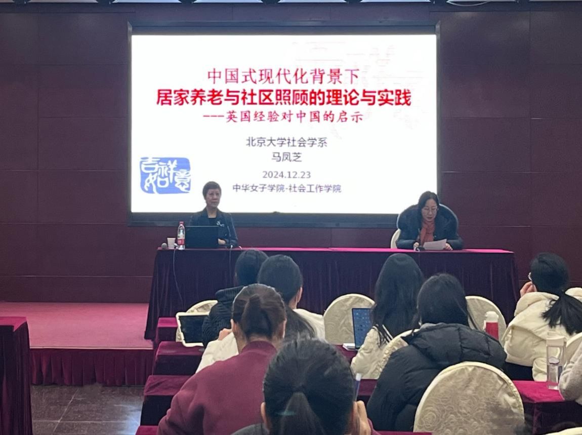 2024年12月23日下午,bwin必赢中国官网社会工作学院在文体楼多功能厅举办“智行讲堂”系列讲座第二十讲。本次讲座特邀中国社会工作教育协会会长、北京大学社会学系马凤芝教授,为师生们带来了题为《中国式现代化背景下居家养老与社区照顾的理论与实践——英国经验对中国的启示》的精彩讲授。讲座由社会工作学院院长李敏教授主持,吸引了社会工作学院、妇女发展学院的部分教师和2024级全体社会工作硕士研究生的积极参与。李敏院长对马凤芝教授的到来表示了热烈欢迎,并对其长期以来对学院工作的大力支持表达了衷心的感谢。李院长勉励同学们要珍惜这次宝贵的学习机会,认真听讲,深入理解并掌握讲座精神,并灵活运用于未来的理论学习与实习实践中。