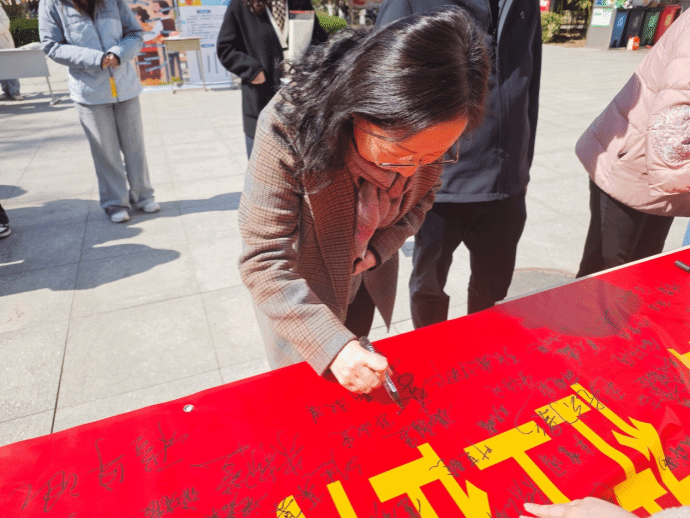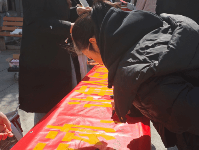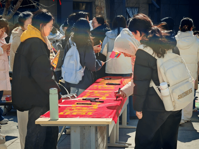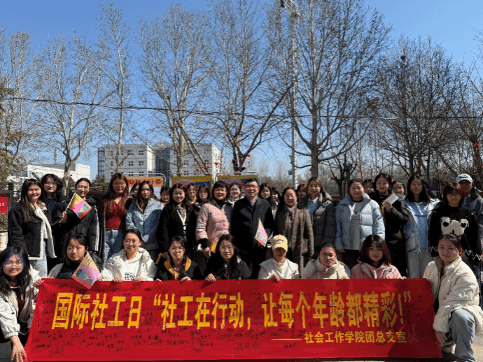 在横幅“社工在行动,让每个年龄都精彩!”上,师生们都签上了自己的姓名,那些字迹或工整、或飘逸,各具特色,横竖撇捺间,凝聚着大家对社会工作的支持与承诺,彰显着对构建更美好社会的共同愿景。