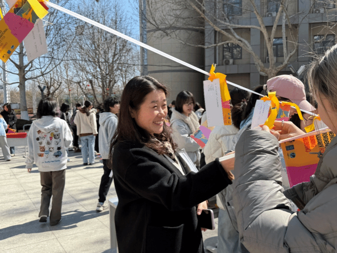 影片中姥姥与外孙之间的故事,深刻展现了代际沟通与情感教育的重要性,两代人的冲突与和解引发深刻共鸣。在“亲情的力量,代际的和解”主题绘画留言板前,大家拿起画笔,描绘出自己心中美好的代际关系,用色彩传递着温暖与爱。参与同学表示:“原来理解和倾听,是打破代际隔阂的第一步。”