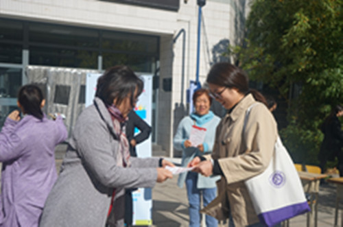 虽然正值寒潮来临,北风呼啸,天气寒冷,但丝毫没有阻挡同志们的活动热情。大家完成上午的教学和行政工作后,早早来到活动场地,挂横幅、拉易拉宝、整理宣传页,干得热火朝天。准备工作完成后,同志们一改平日工作中的形象和风格,自然而然地切换到志愿者的身份和状态,开始向往来食堂的同学们派发支部专门印制的“‘呵护心灵,助力成长’志愿个案服务计划”宣传页,请同学们关注该项目并将宣传页转发有需要的同学。现场气氛活泼生动,温馨有爱。