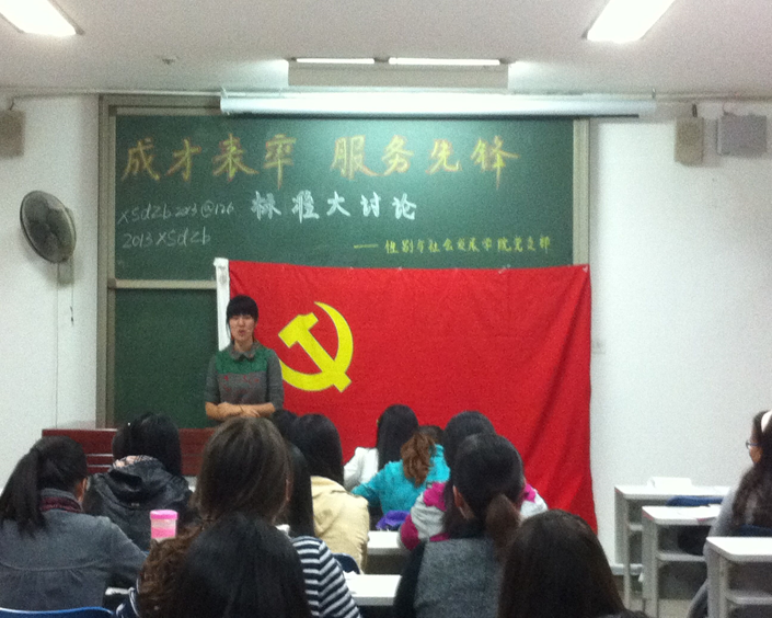 为深入推进我院学生党员先锋工程的开展,充分发挥学生党员的先锋模范带头作用和战斗堡垒作用,增强学生党员的积极性、主动性。2014年10月14日晚性别与社会发展学院学生党支部在主楼349召开组织生活会,本次会议的主题是党员 “成才表率 服务先锋”标准大讨论。全体党员及入党积极分子参加参并参与讨论,会议由学生党支部副书记付蓉主持。