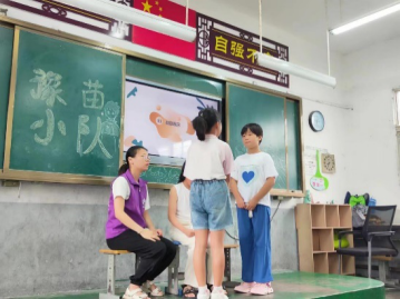 接下来的几天,豫苗小队师生围绕自然灾害防范、日常生活安全保障、反校园霸凌、应急逃生、反性侵、科学素养提升等方面,通过课程讲授、现场互动、角色扮演、情景剧等多样化的方式与30多名小学生进行了生动活泼、深入细致的交流。在自然灾害防范环节,孩子们学习了自然灾害的基本定义、类型,重点了解地震的发生状况和自救措施、防雷电、防火灾的基本常识,并通过视频科普、找错游戏和问答题的形式加深了对这部分知识的印象;还学习了沙尘暴、台风的成因和逃生措施,通过具体真实的案例、判断题和情景再现的戏剧形式,了解了洪水的破坏性和自救措施。在逃生演练中,队员们给小朋友讲解了逃生时的注意事项,她们认真听讲,在逃生演练时大部分都能正确且快速地逃生。日常生活安全教育主要从居家安全、饮食安全、防骗防拐、交通安全、消防安全、上网安全、校园安全、防溺水、急救知识等方面来教授孩子们相关知识。为使小朋友们加深对涉及问题的印象,主讲人通过情景剧的方式,邀请小朋友们上台演绎。在反霸凌教育中,因为此前学校已经开展过相关教育,孩子们对这方面知识了解比较多,课堂表现比较活跃。在反性侵教育中,通过口头表扬和礼品奖励相结合的方式,进行防性侵和性教育科普知识传播。孩子们也从一开始的羞涩,不敢面对,到逐渐敞开心扉,主动举手发言,用正确的态度直面性教育。在几天的课程中,小学生们表现出对活动的高度热情,不仅获得了知识上的增长,而且与豫苗小队的师生建立了深厚的感情。