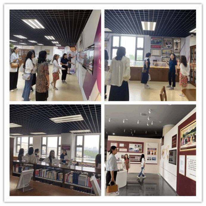 座谈会结束后,校友们怀着对母校的眷恋与深情,在老师的带领下,前往校史馆和图书馆进行参观。在校史馆,一幅幅珍贵的照片、一件件详实的展品,生动展现了学校七十多年来的变迁与发展历程,见证了学校在教育理念、教学设施、师资队伍等方面的巨大进步与成就;图书馆以其丰富的藏书、舒适的阅读环境,更是让校友赞叹不已。她们为母校的蓬勃发展倍感自豪,纷纷驻足拍照,定格美好瞬间。